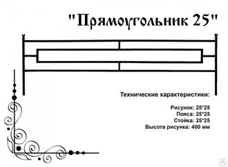 Прямоугольник 25 1220 руб. В корзину Поделиться: Цена указана за 1 пог. метр изделия. Стандартные секции - 2200х500, 2500х500, 3000х500 Стандартная покраска изделий - Эмаль 3 в 1 (Грунт+эмаль). Стойка: труба 25х25, перекладины - труба 25х25 Рисунок - труба 25х25 Стоимость указана без установки.